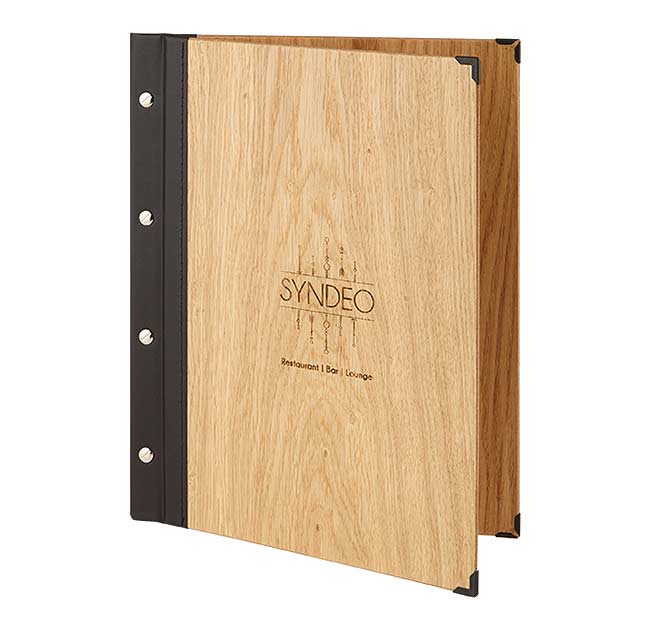 Hochwertige Materialien: Leder, Holz oder Metall werten das Speisekarten-Erlebnis auf.
