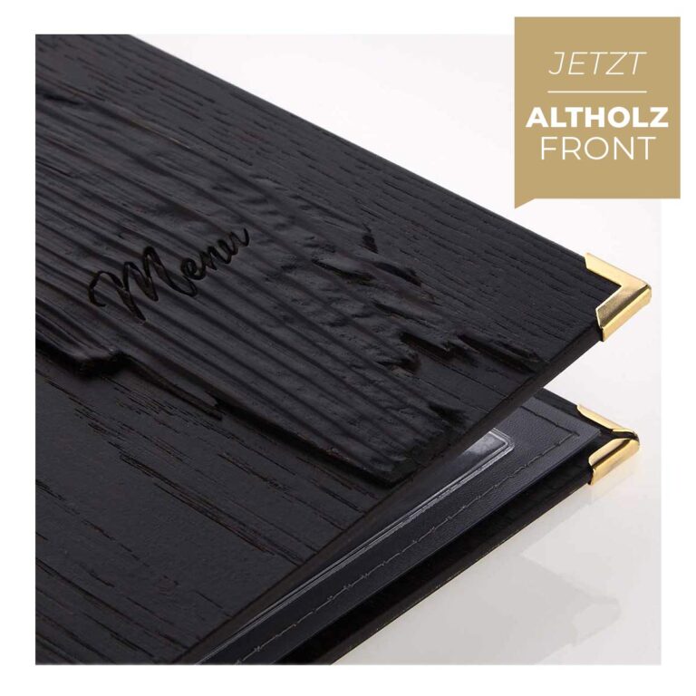 Entdecken Sie eine große Auswahl stilvoller Speisekarten für Restaurants, Hotels und Cafés. Unser Lookbook zeigt inspirierende Designs – von edlem Holz über hochwertigem Loden bis hin zu elegantem Leder. Jedes Modell kann mit einem klick auf „konfigurieren“ individuell angepasst und direkt in unserem Webshop Gastrotopcard.com konfiguriert und bestellt werden. Nutzen Sie unsere Expertise und gestalten Sie Ihre perfekte maßgeschneiderte Speisekarte.