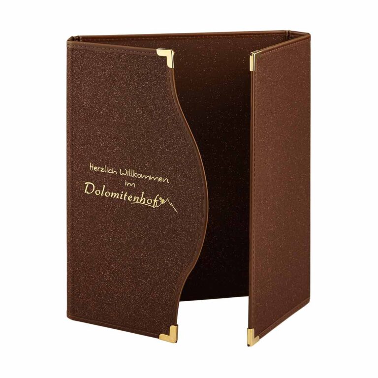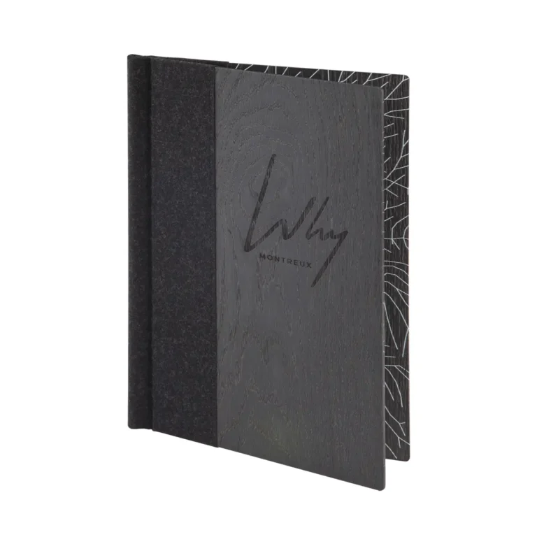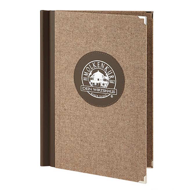 Hochwertige Materialien: Leder, Holz oder Metall werten das Speisekarten-Erlebnis auf.