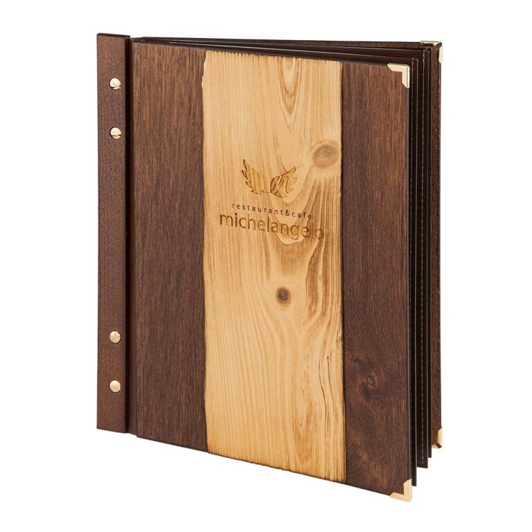 michelangelo Speisekarte aus Holz mit Holzschiene