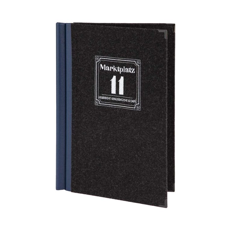 Marktplatz 11 Speisekarte aus Loden mit individuellem Stick